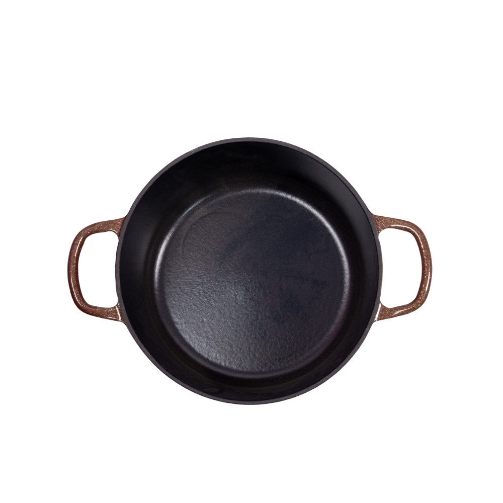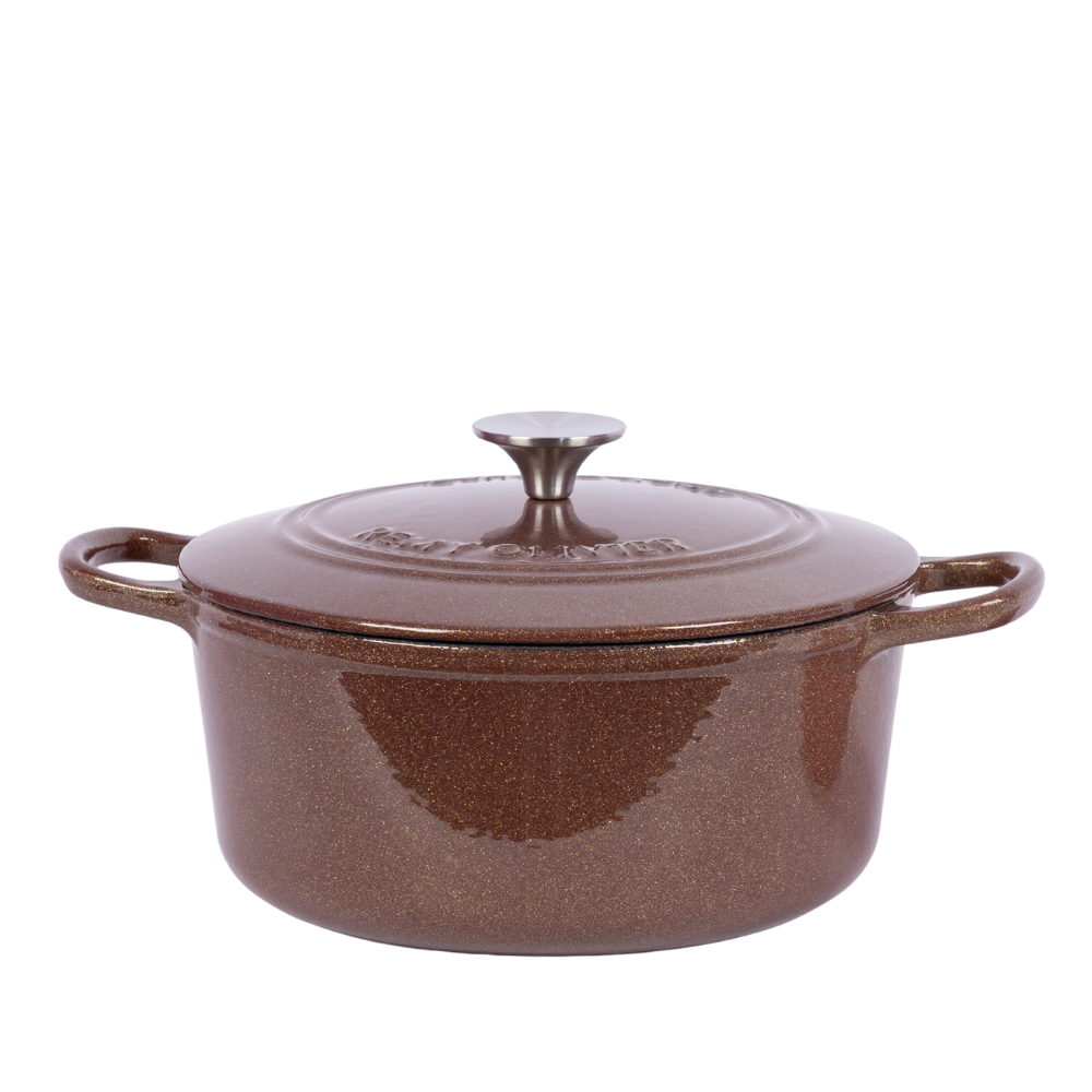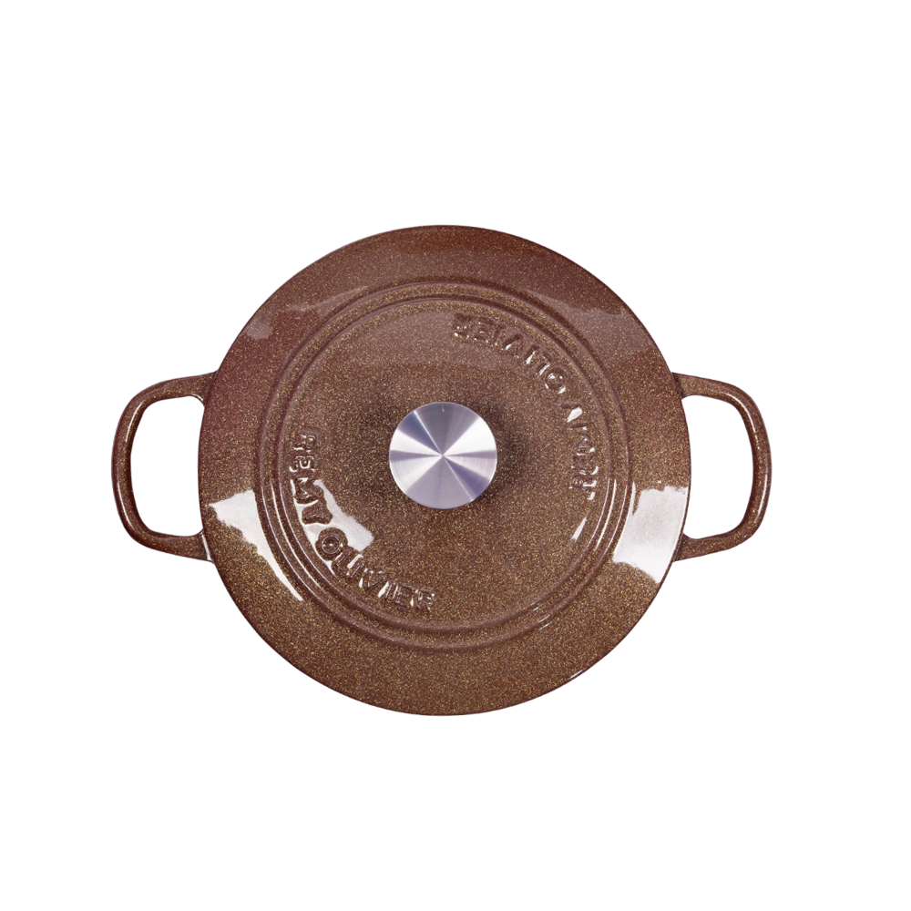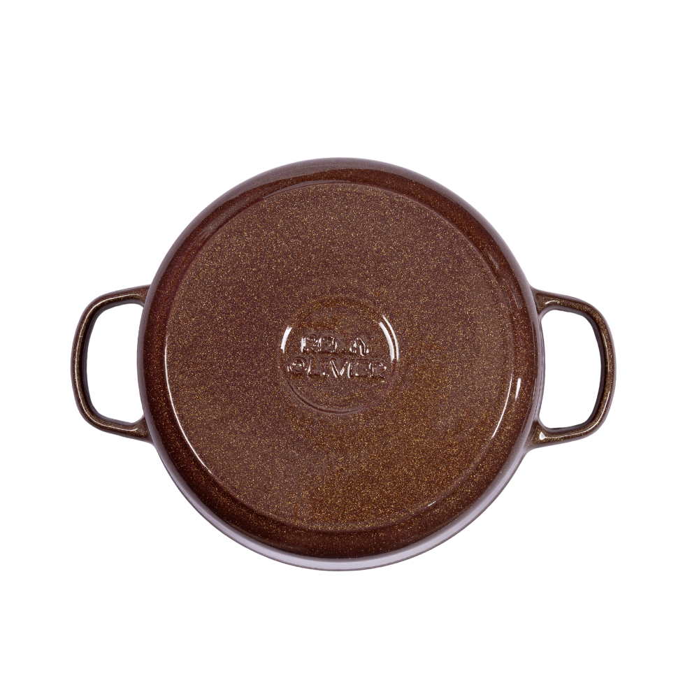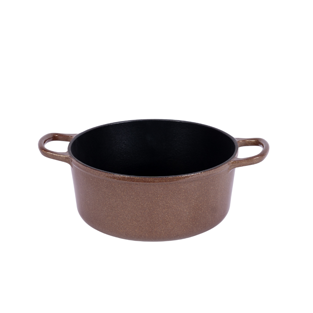 Gilded Elegance Deep Stew Pot | Coffee-Colored Gilded Enamel, A Flowing Artwork on the Dining Table | Cast Iron Heat Storage Releases More Flavorful Bubbles, Speeds Up Stewing | Physical Non-Stick, Oil-Friendly Interior that Improves with Use | 15.5cm Deep Cavity Locks in Original Flavor