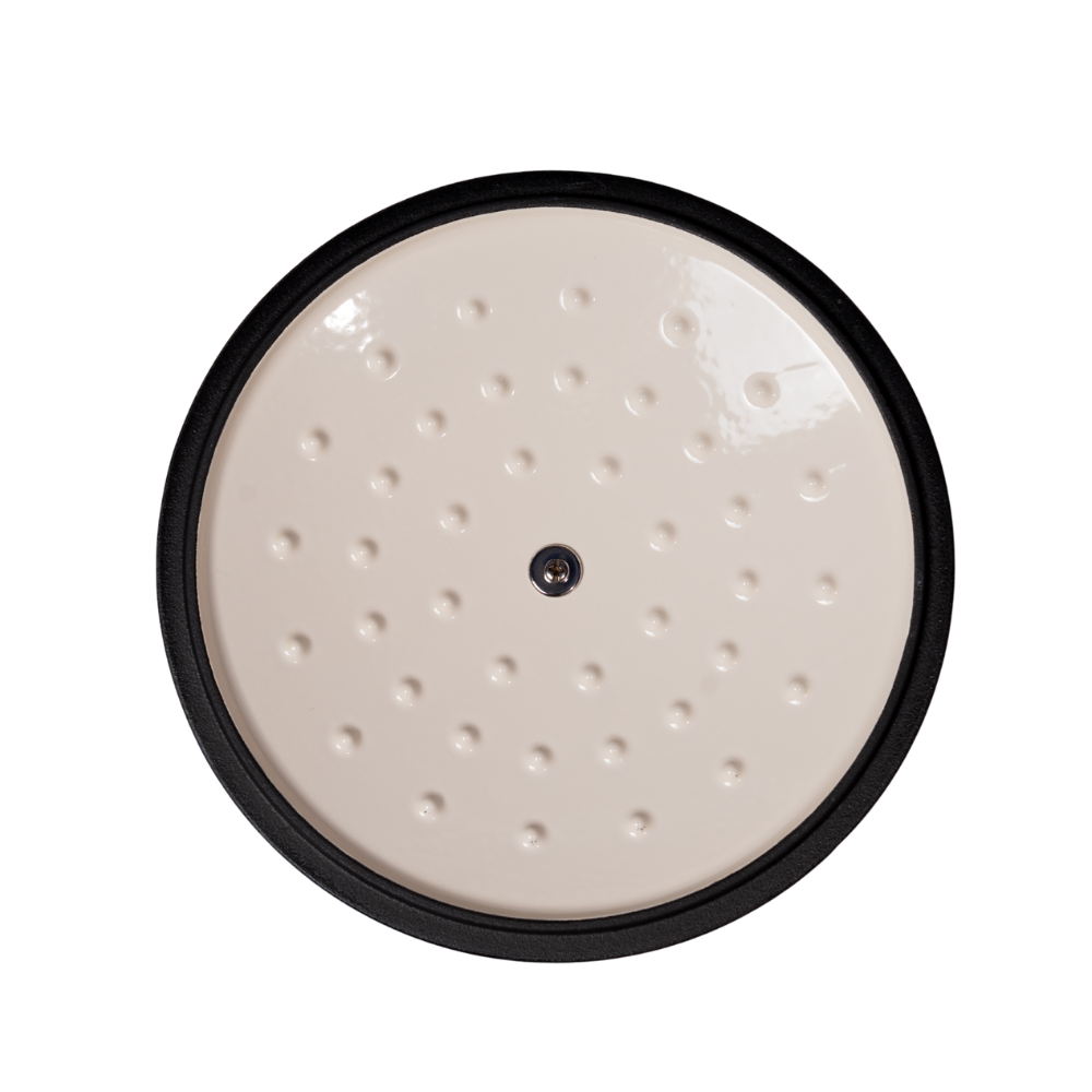 | Lid Design | Heavy Cast Iron Lid with Interior Condensation Dots | Enhances seal, enables internal moisture circulation, keeps food moist. |